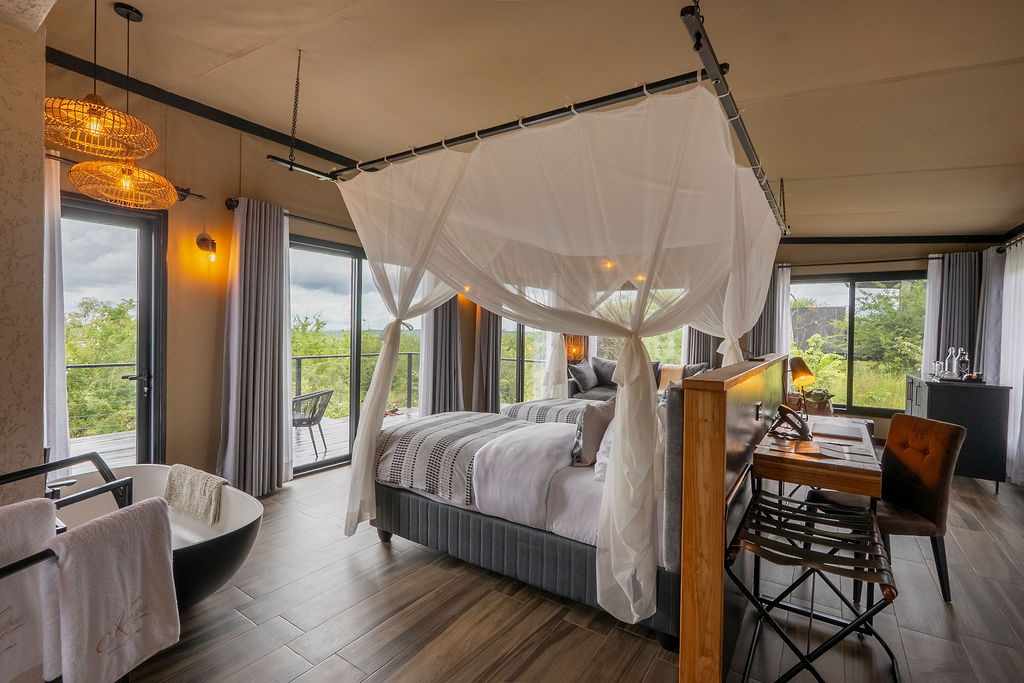 • Secluded Design: Spacious, canopy-bed suites feature en-suite bathrooms, private verandas, and large windows that frame the untamed savannah, allowing the sights and sounds of the bush to become part of your stay.