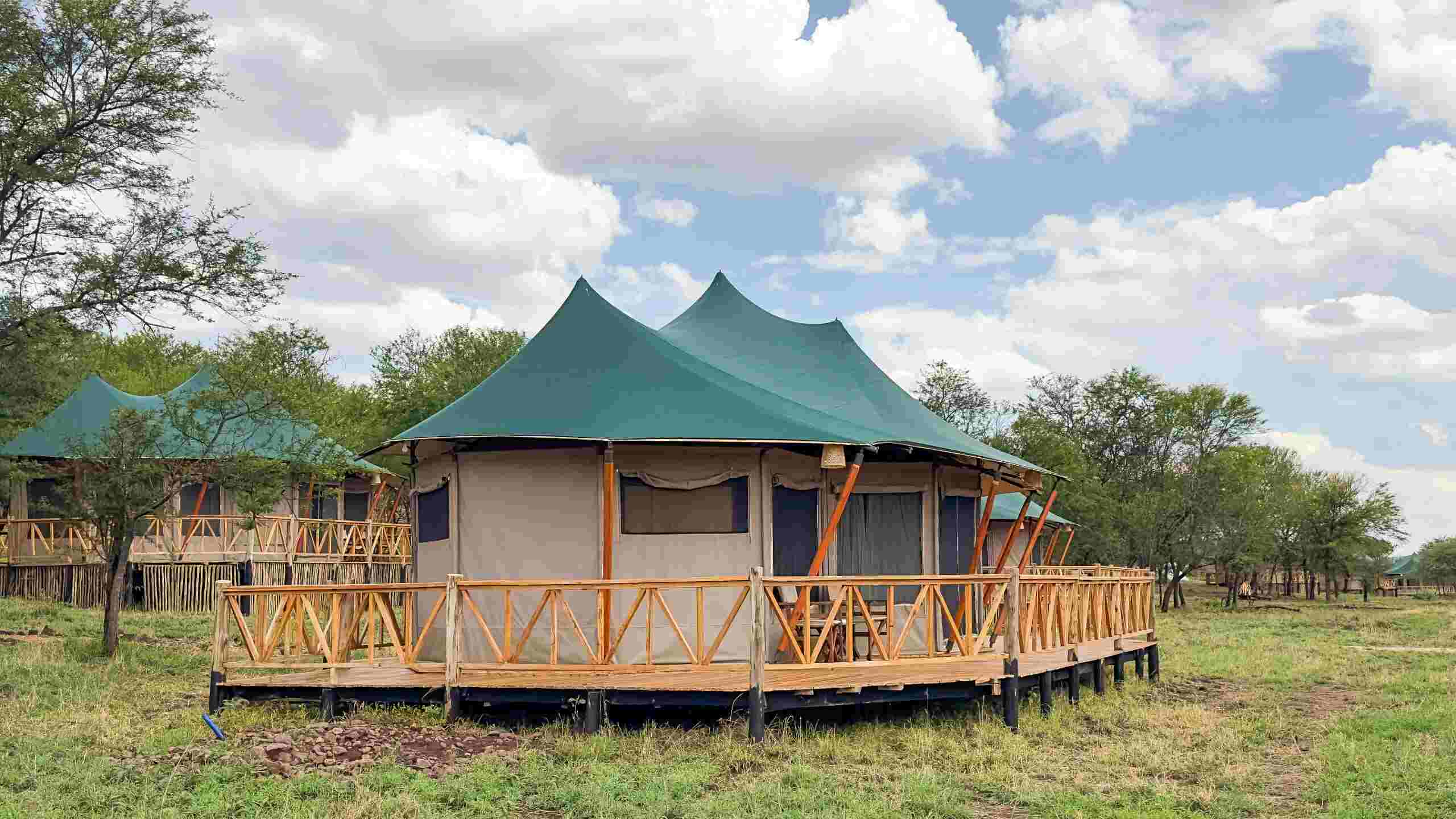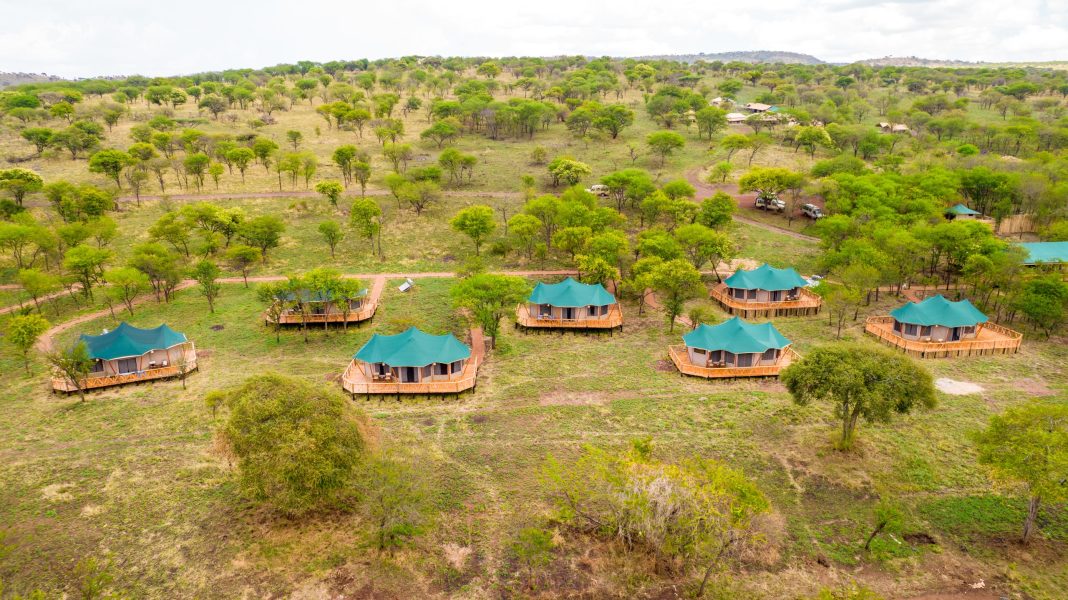 • The tents are set on raised wooden platforms, providing privacy and expansive views of the Serengeti plains.