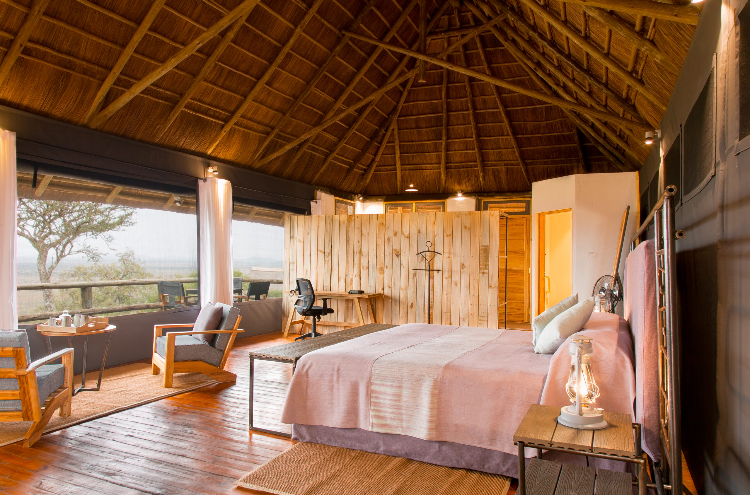Spacious Luxury Tents & Suites are elegantly furnished with locally sourced materials and traditional African art.