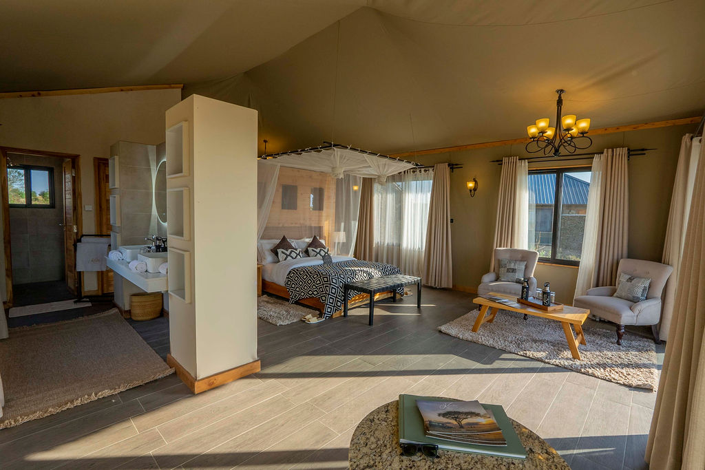 Authentic Safari Comfort: Offers the genuine feel of a classic mobile migration camp but with the added comfort of permanent stone platforms and thatched roofs.